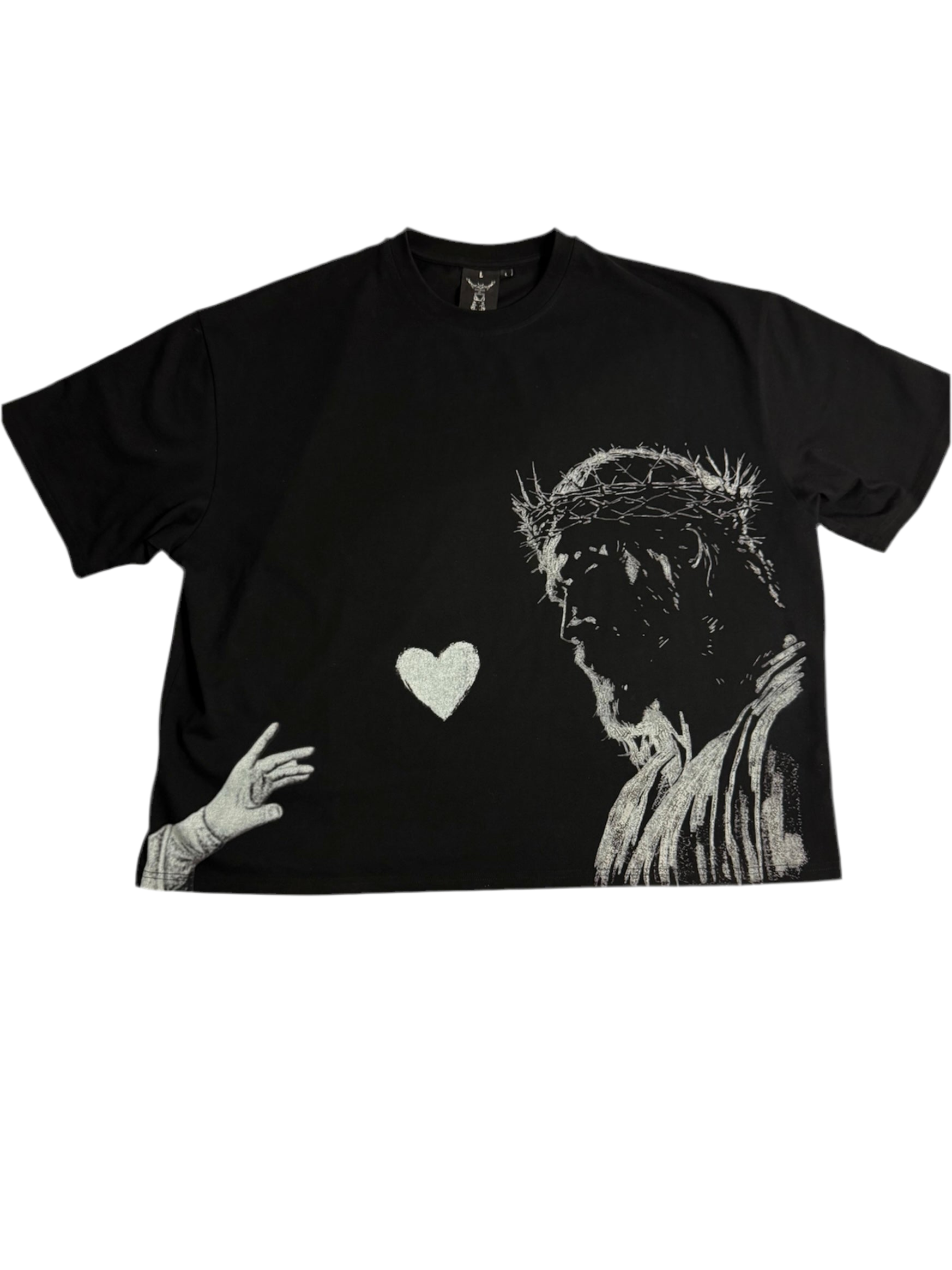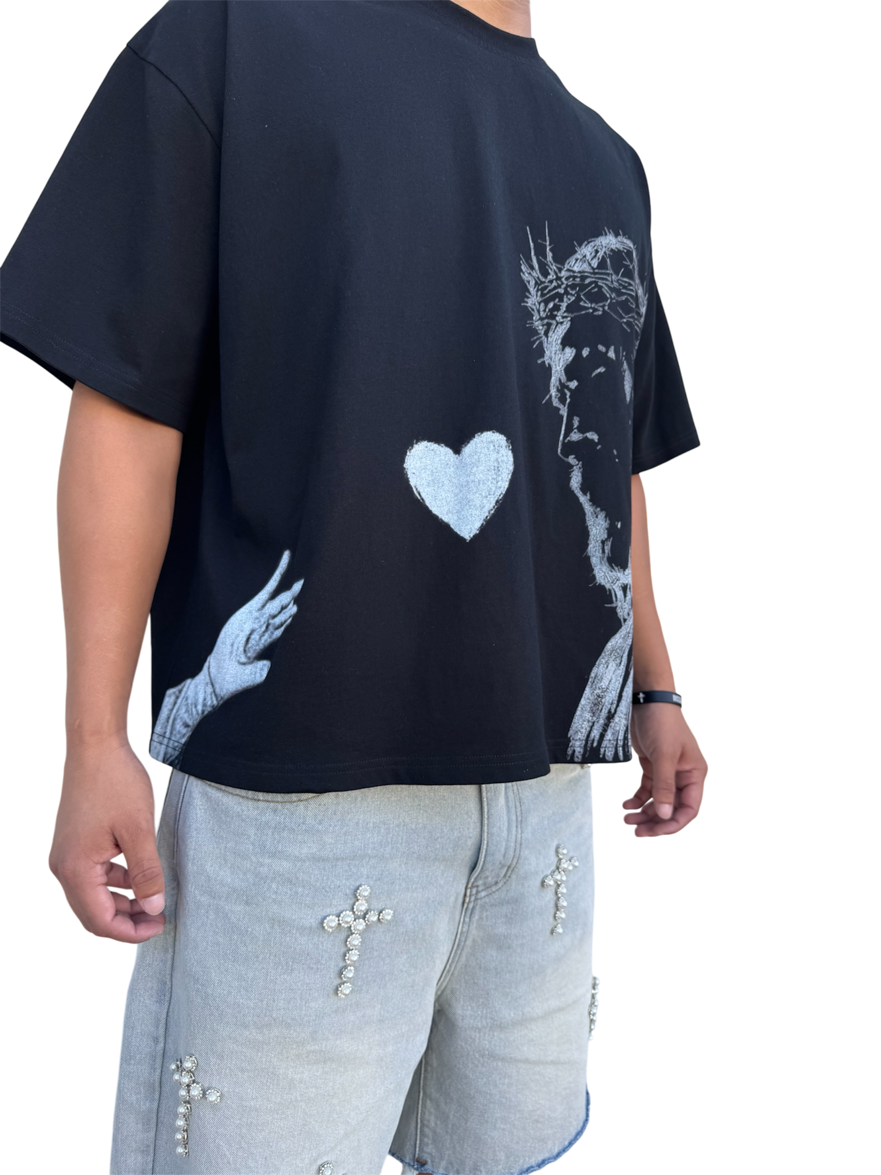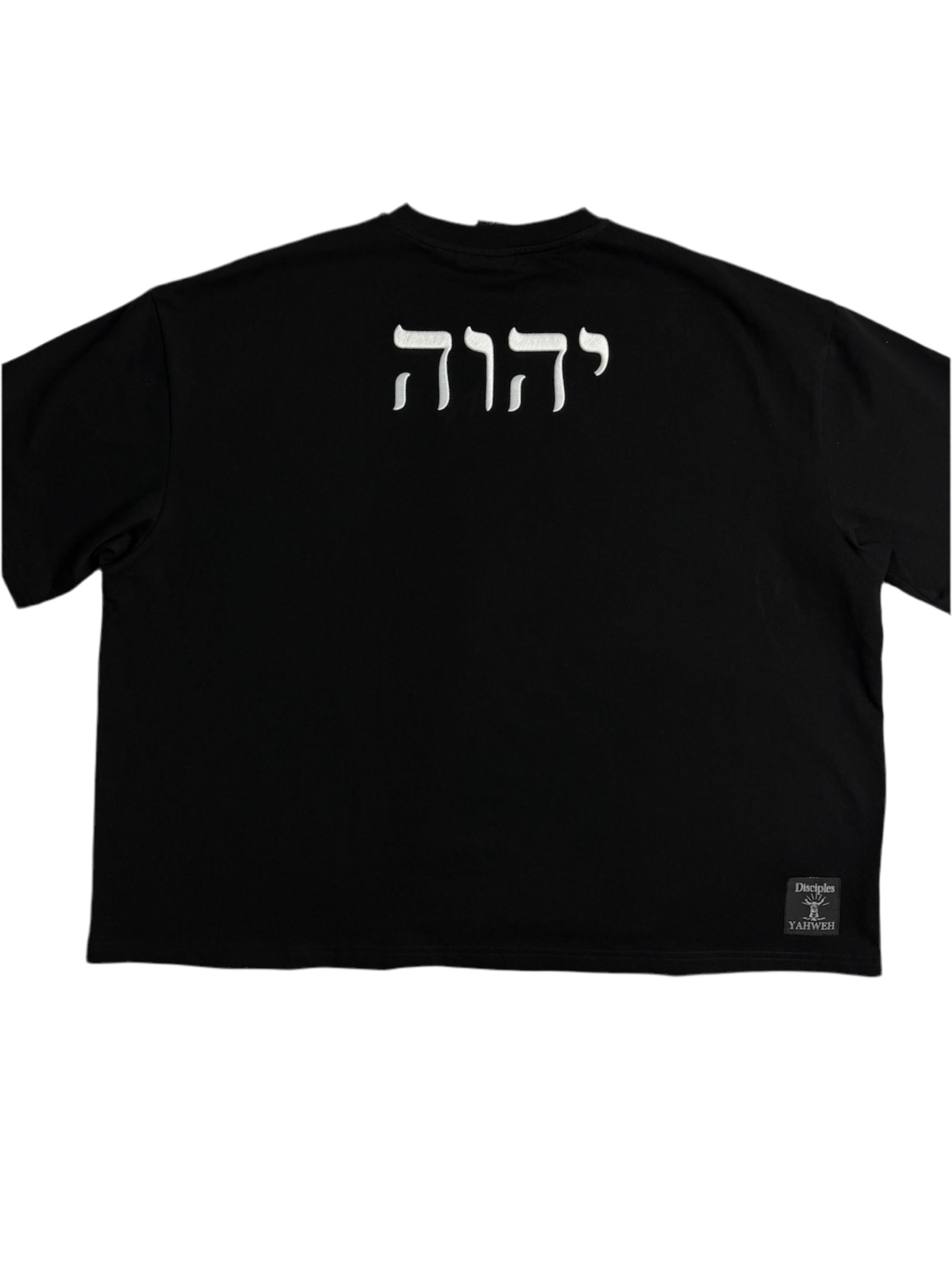 A bold shirt and design to remind yourself Jesus is true love. 3D embroidery of Yahweh in Hebrew on the back of shirt